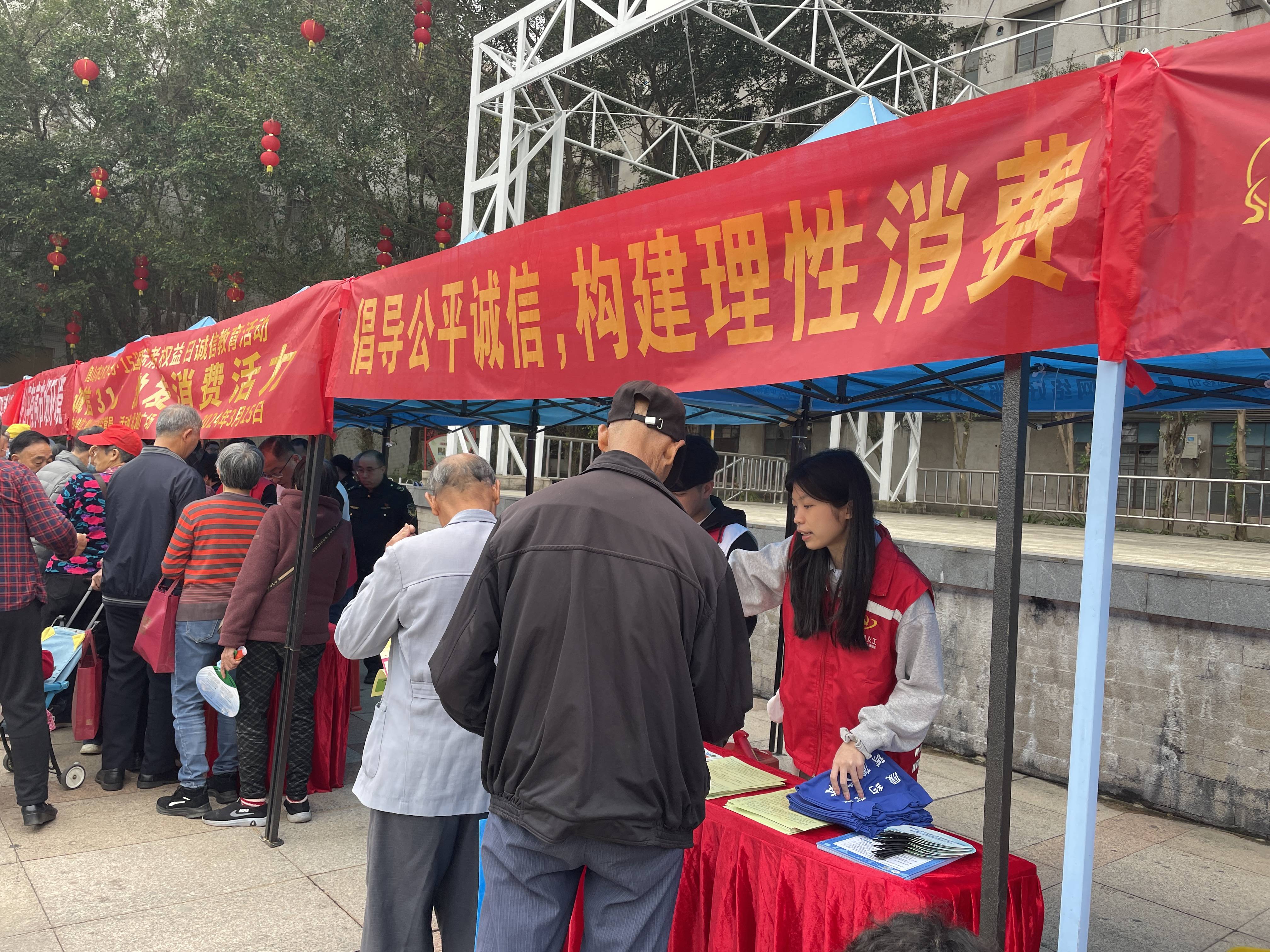 在活动现场,我局以“倡导公平诚信,构建理性消费”为宣传主题,通过设立咨询服务台、悬挂横幅、向市民发放宣传材料普及失信惩戒和守信激励等知识,讲解如何维护良好的信用记录以及信用风险的防范措施。工作人员现场派发活动宣传折页100余张,参加活动的居民超过100位,其中现场解答居民疑问超过50次,进一步提升广大群众的信用知识水平以及守信意识。