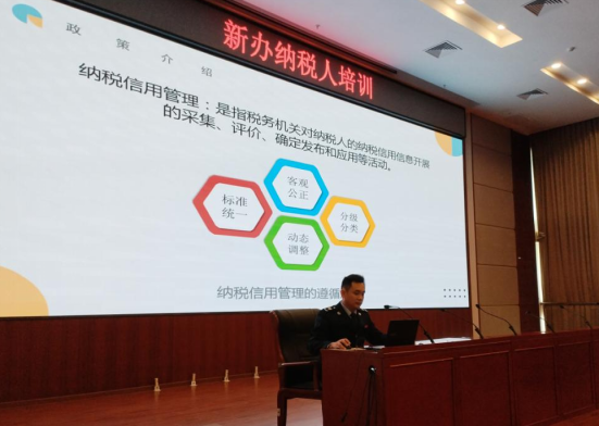 培训会上,市税务局业务骨干围绕新办纳税人办税全流程进行了讲解,助力新办纳税人熟练掌握办税流程,提高办税效率;会上还对纳税信用政策进行解说,介绍了守信激励失信惩戒措施,提醒纳税人诚信纳税,助力构建诚信社会。